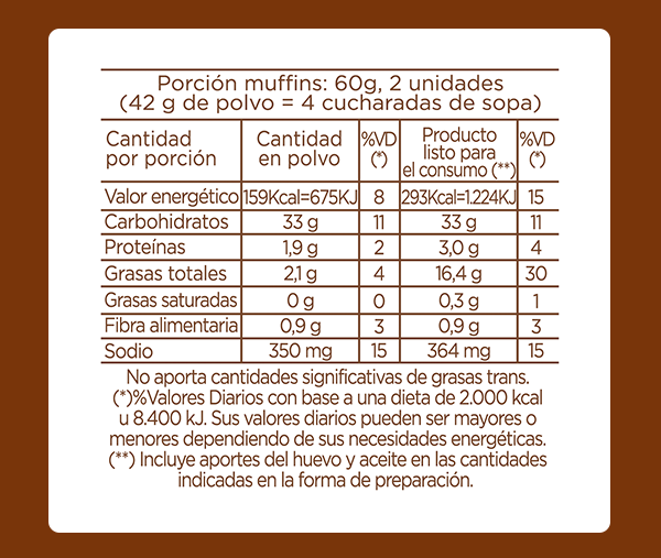 Polvo para preparar muffins sabor a vainilla. Desarrollada especialmente para elaborar muffins tipo americano, húmedos, suaves y de excelente calidad, batiendo toda la mezcla de una sola vez. Permite la elaboración de muffins de vainilla y/o saborizados (limón, marmolado, etc.) así como muffins con inclusiones (chips, semillas, nueces, etc.).
